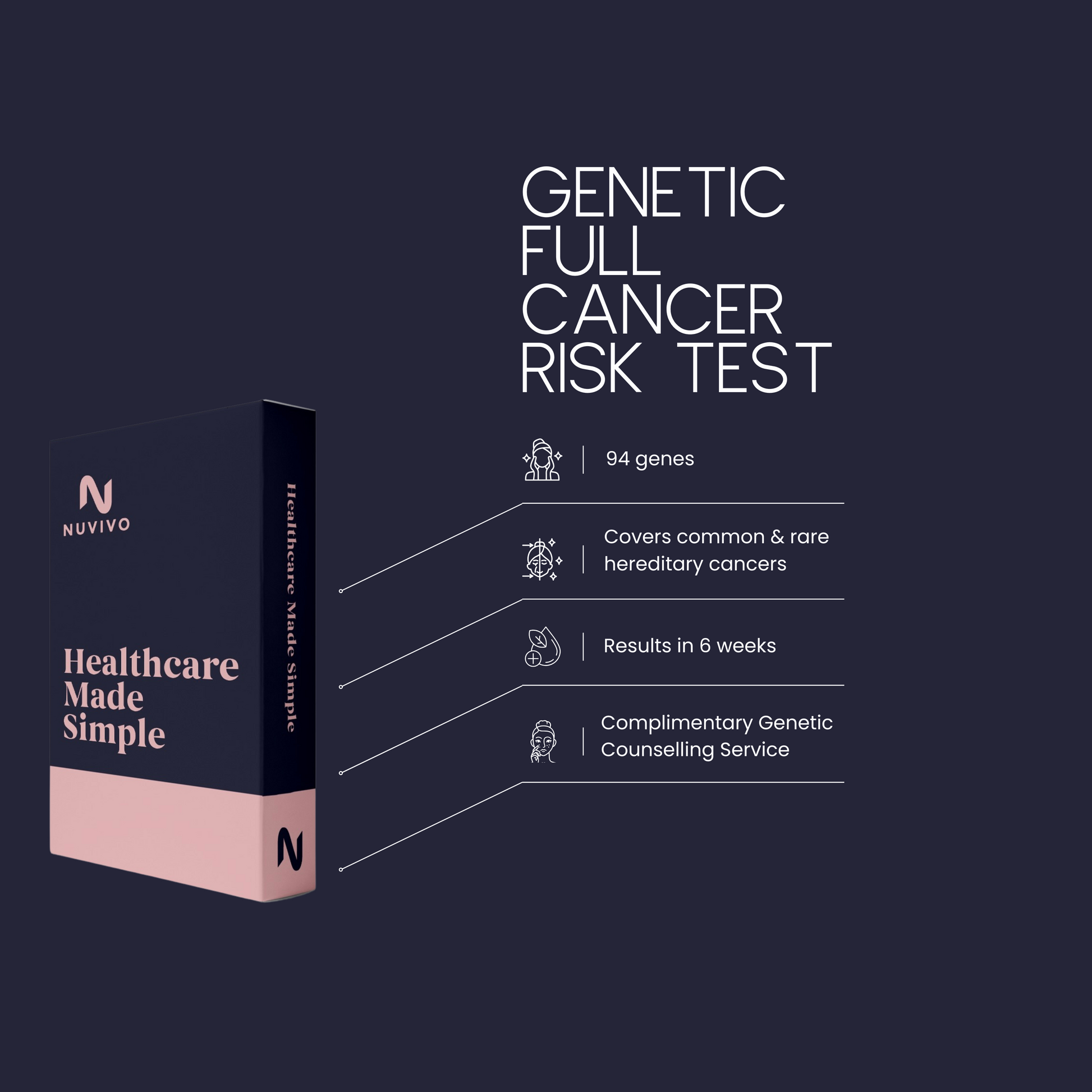 This is the broadest hereditary cancer screening available, analysing 94 genes associated with both common and rare cancers. It provides the most complete picture of inherited cancer risks, empowering patients to take proactive steps for monitoring, prevention, and treatment.